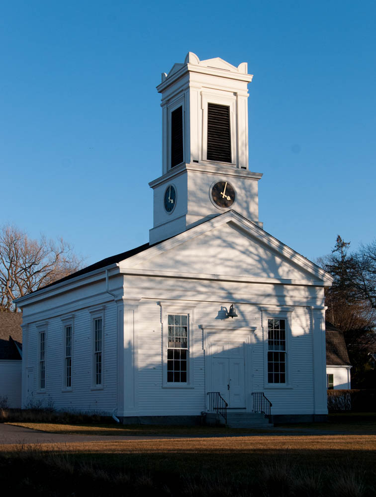The Greenmanville Church dates to 1851, although its original location was down Greenmanville Avenue (adjacent to the Museum’s South Entrance). It was moved to its current location on the McGraw Quadrangle in 1954 after it was acquired by Mystic Seaport in 1951. The original steeple had no clocks and had been broken up in 1902. It was about 3 feet shorter than the present one, which was built by the Museum in 1954 after the building’s relocation.