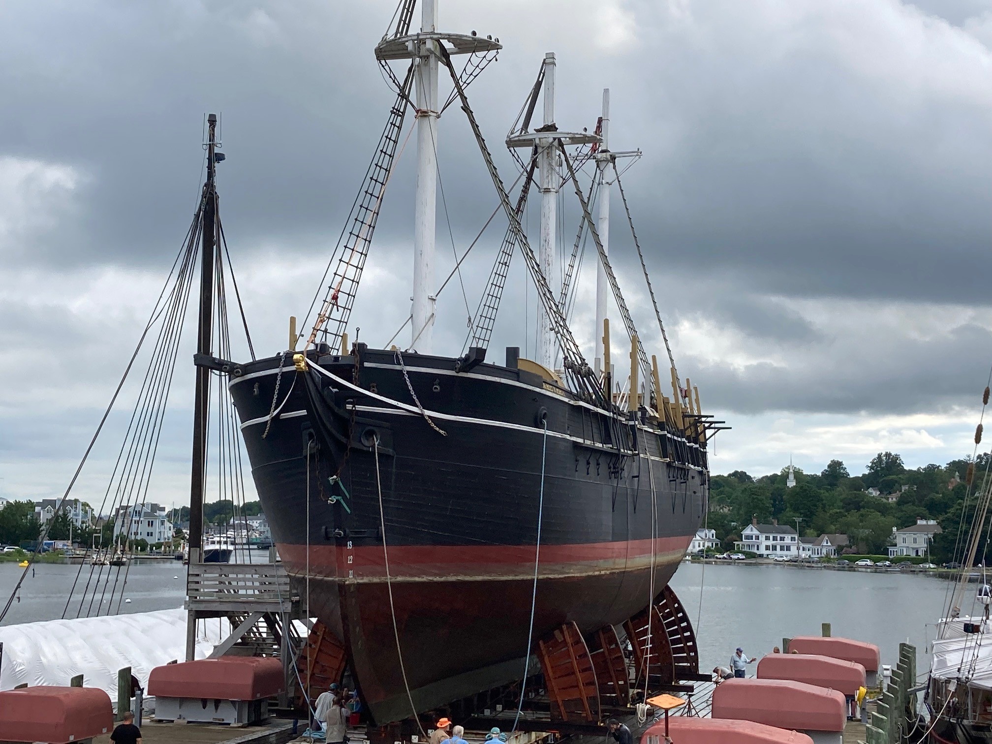 Mystic Seaport Museum hauled the 1841 whaleship Charles W. Morgan for routine maintenance and preservation work on Monday, July 19.